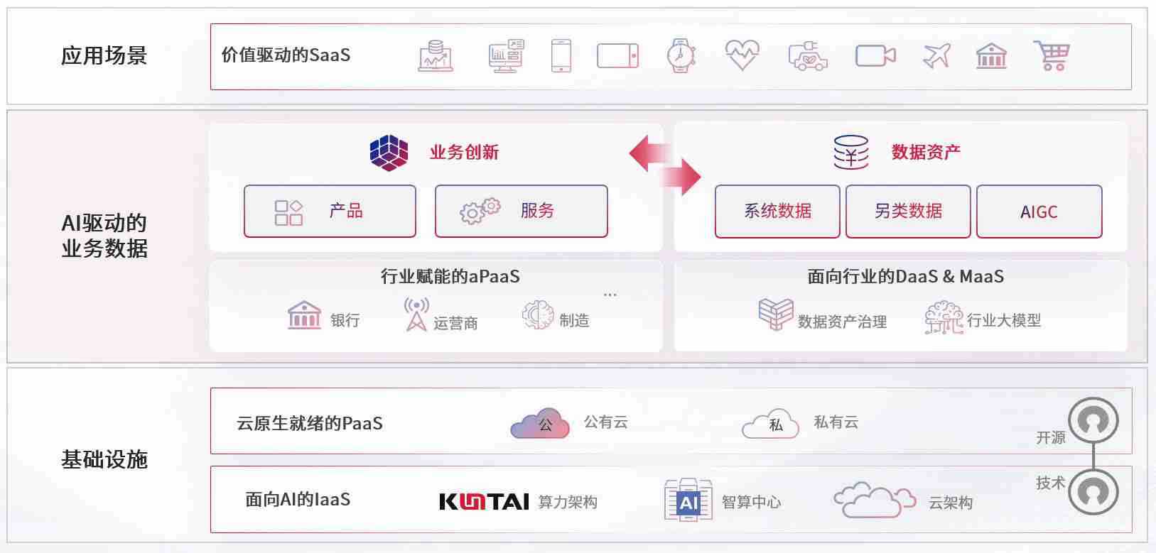 数字时代,,,围绕企业数字化转型的关键要素,,z6尊龙数码开创性的提出数云融合战略和技术体系框架,,,,着力在云原生、、、数字原生、、、、AI原生和信创产业上架构产品和服务能力,,,,为处在不同数字化转型阶段的快消零售、、、汽车、、、金融、、、医疗、、、政企、、、、教育、、、运营商等行业客户提供泛在的敏捷IT能力和融合的数据驱动能力,,,,构建跨界融合创新的数字业务场景和新业务模式,,助力企业级客户建立面向未来的核心能力和竞争优势,,全面推动社会的数字化、、智能化转型升级。。。
